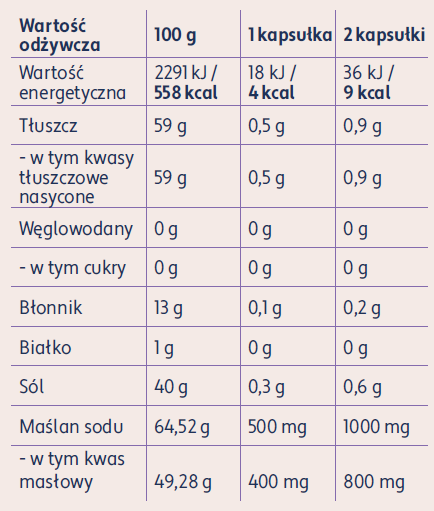 Kwas masłowy to krótkołancuchowy kwas tłuszczowy, który jest podstawowym źródłem energii dla komórek nabłonka przewodu pokarmowego.